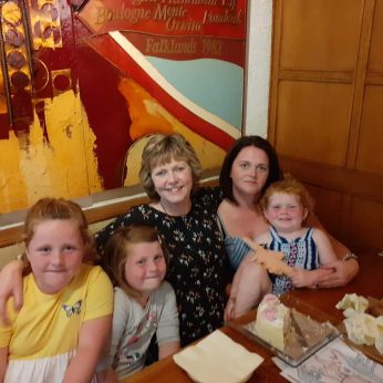 Fel teulu ry’ni’n ceisio normaleiddio’r galar gyda’n gilydd wrth siarad am Dad a Mam trwy’r amser. Rydym yn trafod atgofion Mam yn aml ac yn ei chynnwys hi yn ein sgyrsiau pob dydd. Roedd hi’n rhan enfawr o fywyd y merched a gallwn ni byth ei hanghofio ni. Ma hyn yn gwneud i’r merched sylweddoli ei fod hi’n iawn iddyn nhw siarad, cofio, a rhannu yr hyn wnaeth Nana ddysgu iddyn nhw.